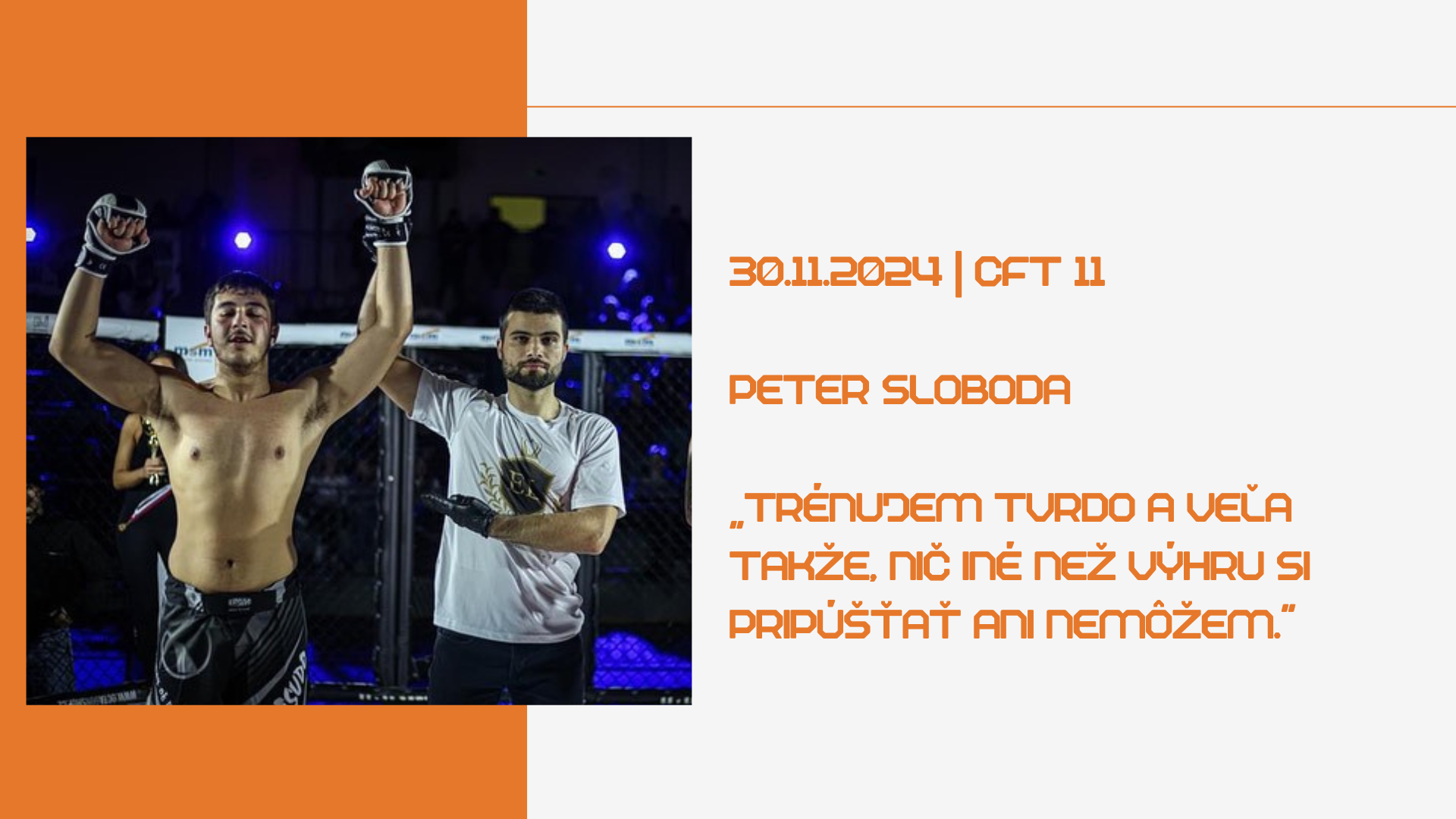 Mladá krv z CHAOS Bratislava, Peter Sloboda, stále nepocítil v MMA prehru. O predĺženie tejto bilancie zabojuje túto sobotu na CFT 11. Tvoj súper bude mať premiéru v MMA. Očakávaš…