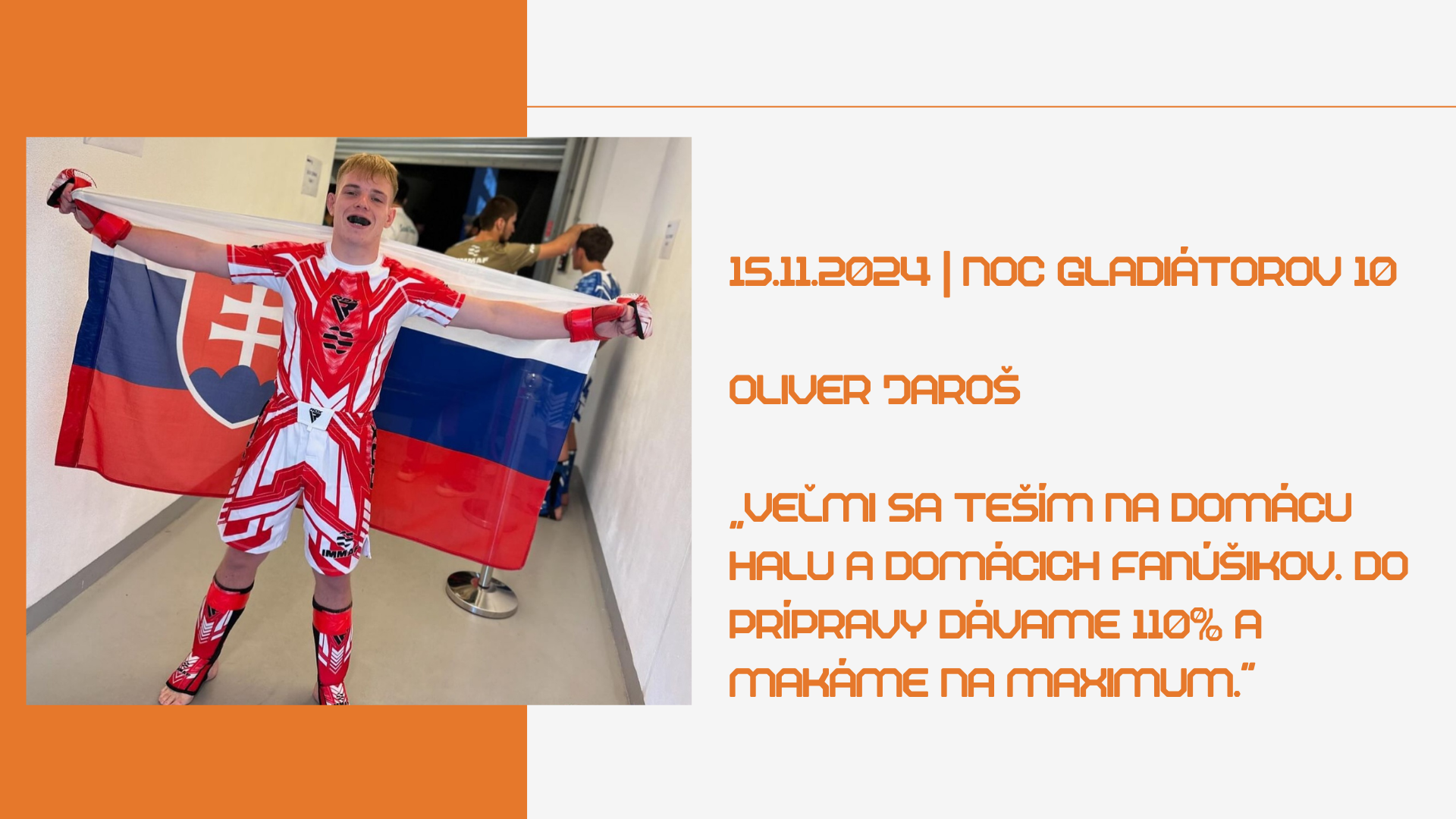Veľký deň pre Veľký Krtíš je bližšie a bližšie. 15.11. sa tam totižto uskutoční Noc Gladiátorov 10, kde bude bojovať aj domáci reprezentant Oliver Jaroš. Za sebou máš aj súboje…